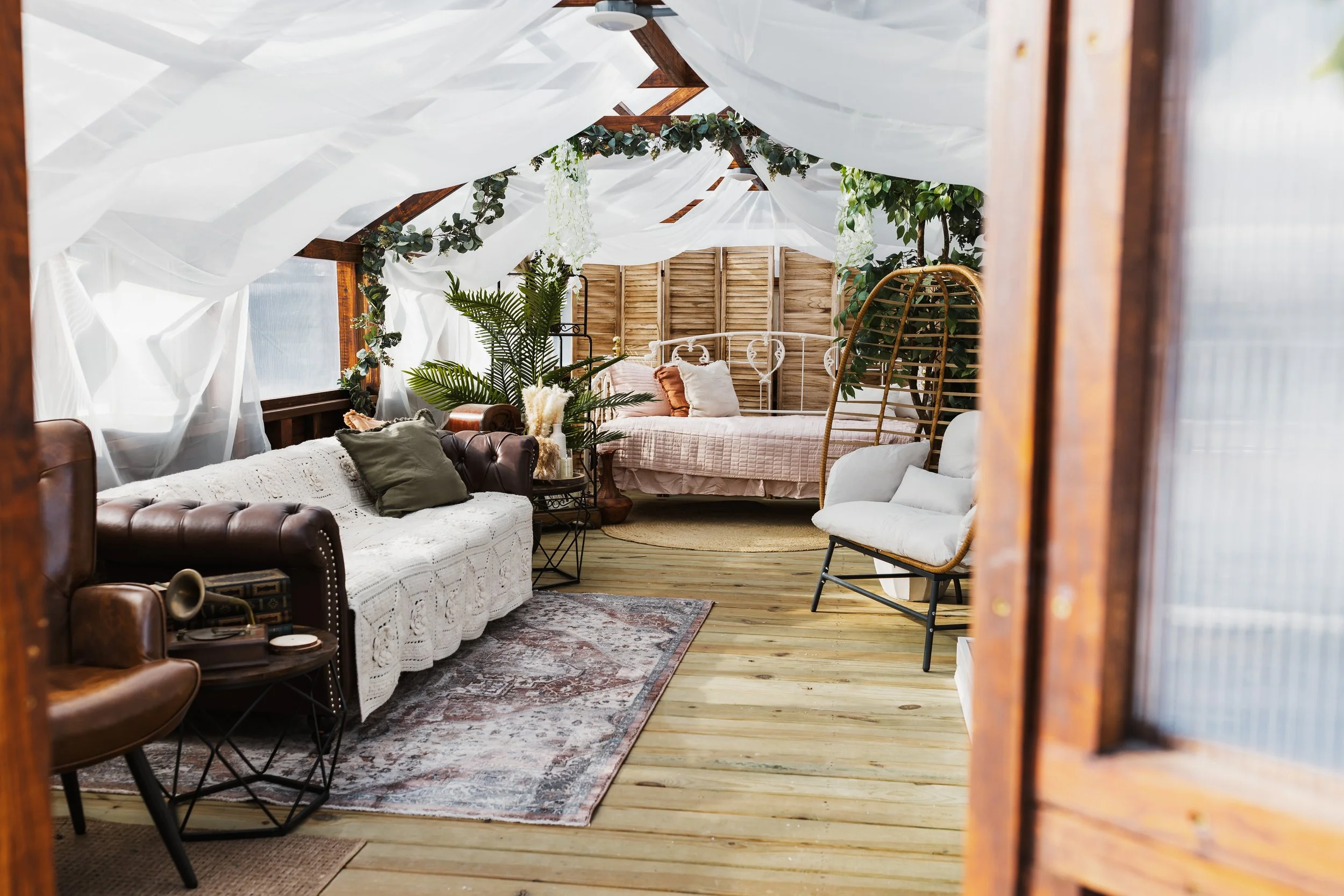 Our greenhouse measures 12x28 feet, making it one of the largest of its kind in Genesee County. Spacious yet inviting, it offers plenty of room for creative sessions, family gatherings, and styled events while still maintaining an intimate, rustic charm.